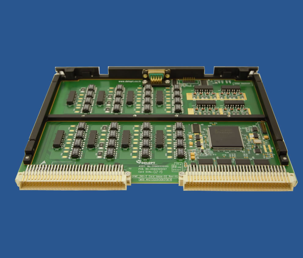 VME I/O card is SRU level subsystem of Open Architecture Computer (OAC) of LCA. The I/O card is a VME 64X Slave card compliant with ANSI/VITA 1-194 standards. The card supports 48 discrete I/O cells. Each cell is user configurable as Inputs/ Outputs / Monitored Outputs. The I/O cells are short-circuit protected and optically isolated. The VME I/O card meets Military standards and is certified by CEMILAC